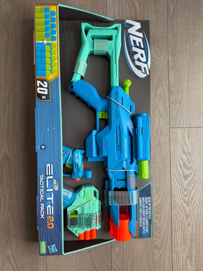 Le blaster Operator DB-2. Il permet de tirer 2 fléchettes d'affilée grâce à son canon à deux fléchettes. Vous saurez prendre l'avantage lors des compétitions grâce à sa poignée d'amorçage, son viseur de précision et sa crosse pour stabiliser la visée.