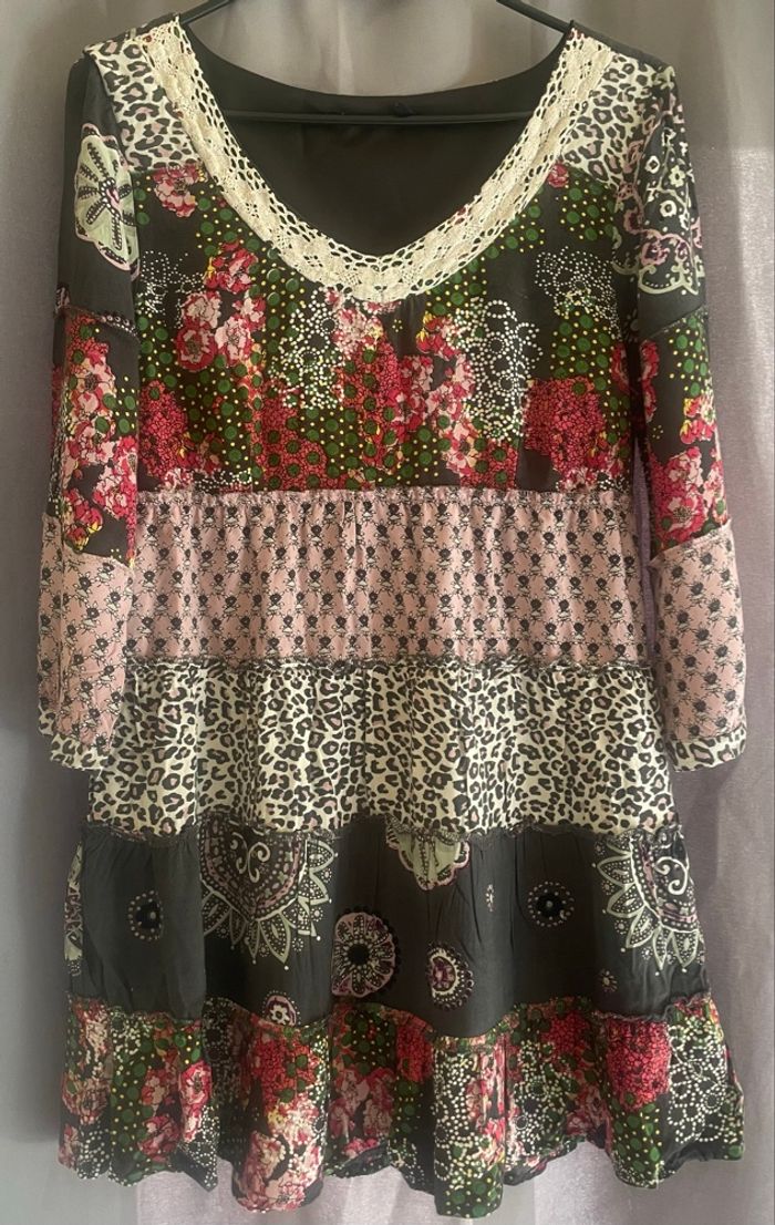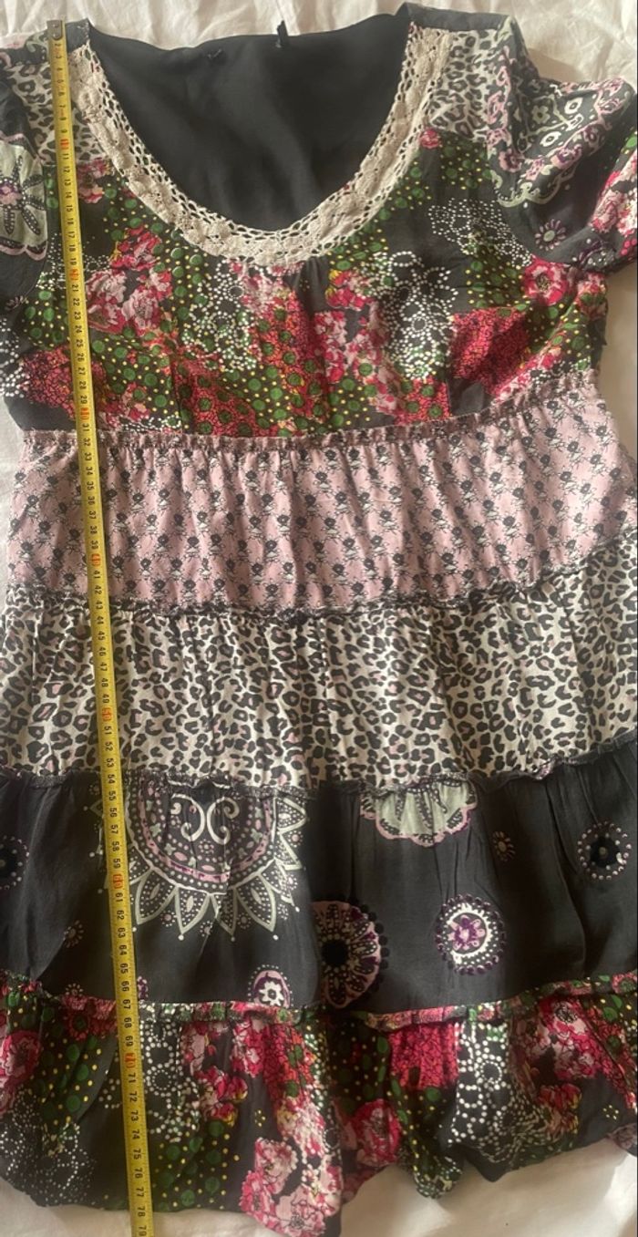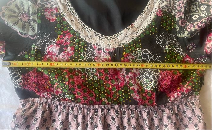 Haut long à fleurs multicolores manches 3/4. À signaler,un petit trou sur le bas(voir photo)mais en bel état. Il n’y a pas d’étiquette de taille mais selon deux guides de l’IA,il en ressort 40/L. Mesure d’aisselles à aisselles:46cm=92cm de tour de poitrine. 🎯Guides de tailles universels disponibles en dernières photos. 📌Il faut savoir que souvent les marques peuvent avoir un guide de taille qui diffère des unes aux autres Merci de vérifier les mesures de vos vêtements avec celui-ci car si ça ne convient pas je n’en serais pas responsable. Si vous avez le moindre doute, n’hésitez pas avant achat de me demander les mesures ou renseignements afin d’éviter tous désagréments. PS:Tous les vêtements sont lavés et repassés avant chaque envoi. 🔥🔥Réduction sur les lots activée🔥🔥 -5% de remise pour 2 articles. -10% de remise pour 3 articles. -20% de remise pour 5 articles.