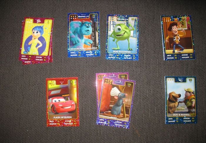 #Collections_Nathg2210 COLLECTION : CARTES DISNEY "PIXAR" - 2015 - NEUVE - n°04 Vice Versa : 8 - 9 Wall E : 12 - 15 - 17 Monstre et Cie : 22 Montre Académie : 28 - 29 - 31 - 33 - 34 - 35 - 36 Némo : 38 - 43 - 45 - 51 - 52 - 53 Les Indestructibles : 62 Toy Story : 71 - 73 - 77 - 80 - 81 Cars : 82 - 88 - 89 - 90 Cars 2 : 92 - 93 - 94 - 95 -97 - 99 Ratatouille : 101 - 102 - 103 - 107 Rebelle : 110 - 111 - 112 - 113 - 114 - 115 - 116 La Haut : 118 - 122 - 125 - 126 1001 Pattes : 128 - 130 - 131 - 135 (certaines double sont en plusieurs exemplaires) - Vendu à l'unité : 0.15€ ou 2.50€ les 20 ou 5.00€ le lot. J'ai également des brillantes suivantes : au prix de 0.50€ Vice Versa : 1 - 2 Monstres et Cie : 20 Némo : 44 Toy Story : 64 Cars 2 : 91 Ratatouille : 105 La Haut : 121 1001 Pattes : 127 Article neuf - Sans emballage - Rangé dans une boite Hermétique . Possibilité d'envoyer d'autres photos sur simple demande. Maison non-fumeur - Sans animaux. Réduction lot activée. Allez voir mes autres ventes, je vide les placards. Beaucoup de vêtements de marque et beaucoup de jouets. Remise en mains propres ou possibilité d'envoi au tarif en vigueur à votre charge. Retour Refusé. Pour tout renseignement, n'hésitez pas à me contacter, je répondrai volontiers à vos questions. Réponse Assurée. Pour Consulter mes autres annonces tapez Nathg2210.