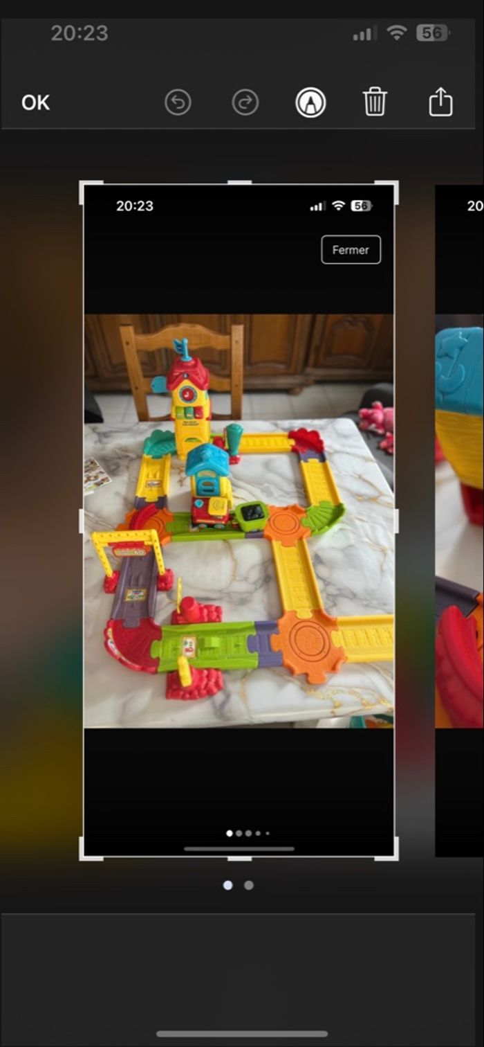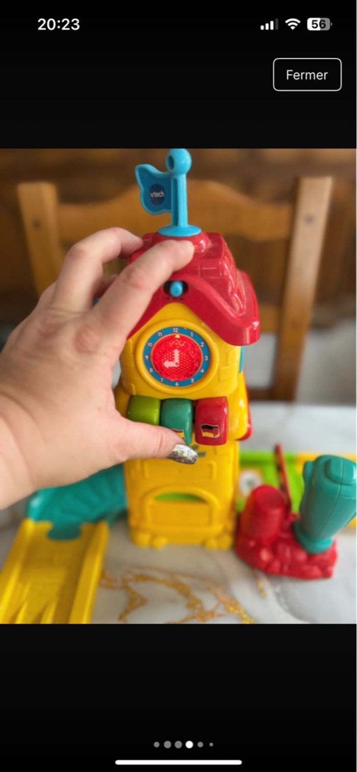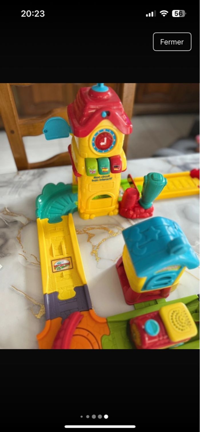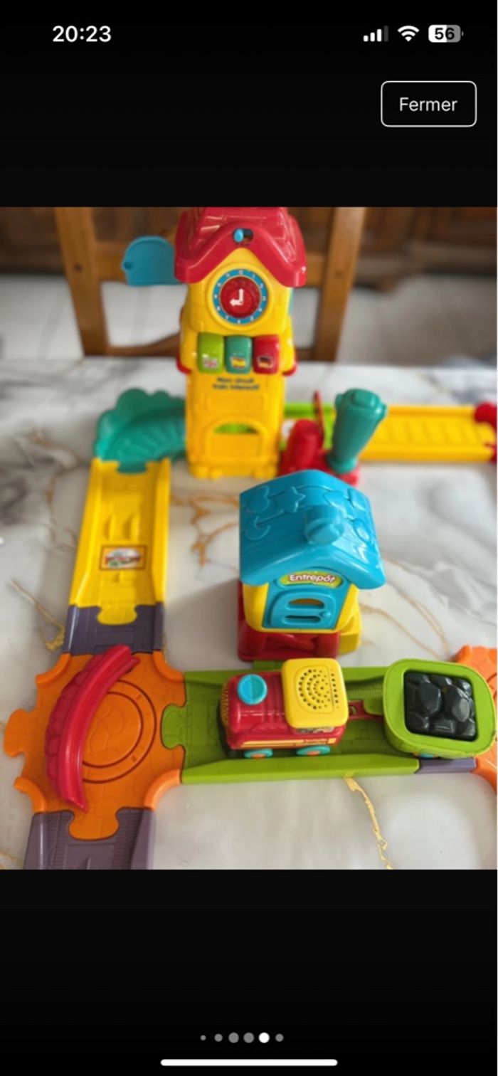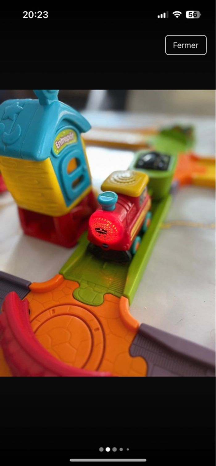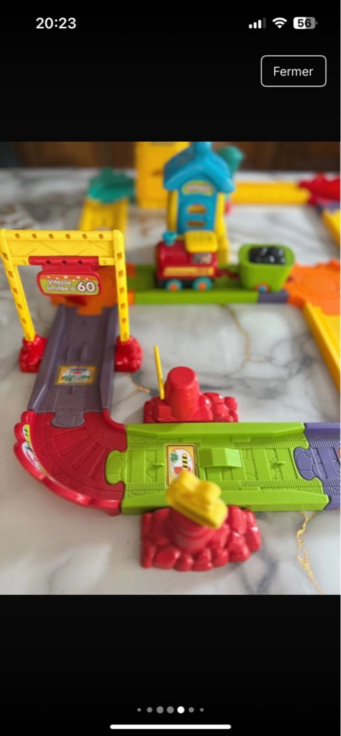 Comme sur la photo peux présenter des traces d’utilisation car ce n’est pas neuve le train fonctionne et a sa remorque la gare aussi
