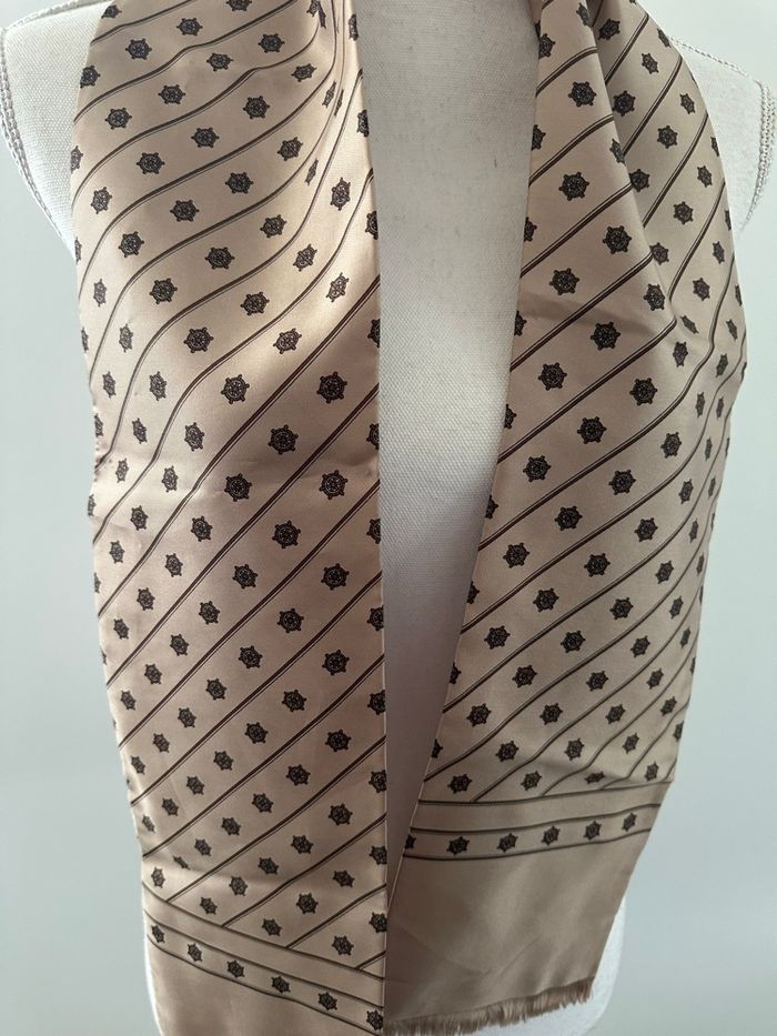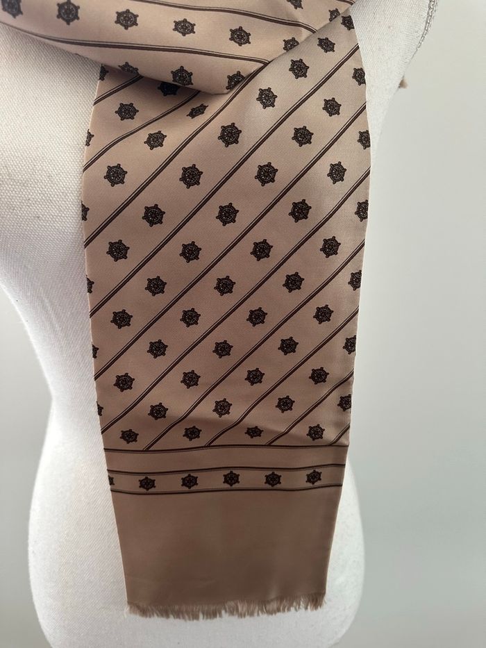 Foulard étole - Excellent état - Crème et noir - Tissus satiné - Imprimés marin, barre - 13,5x140cm - Modèle unisexe - Vintage, années 80’