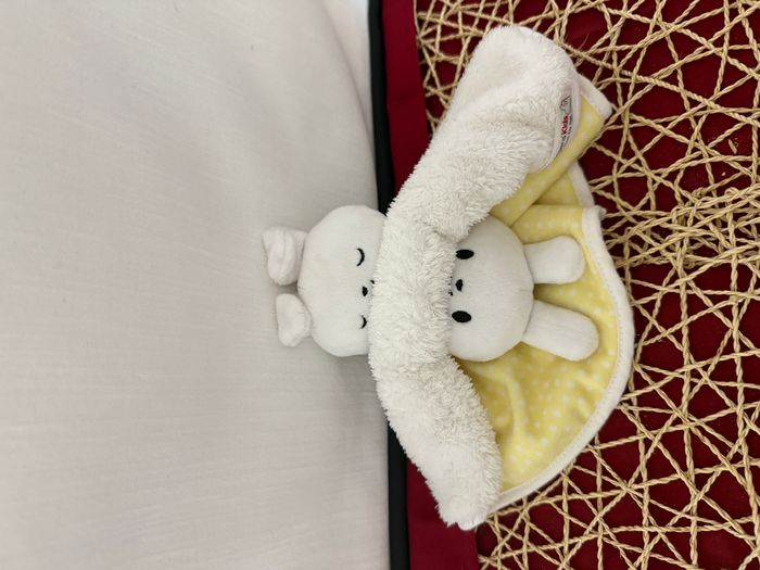 Doudou lapin blanc jaune CLAESSENS' KIDS sans veilleuse 7