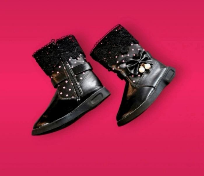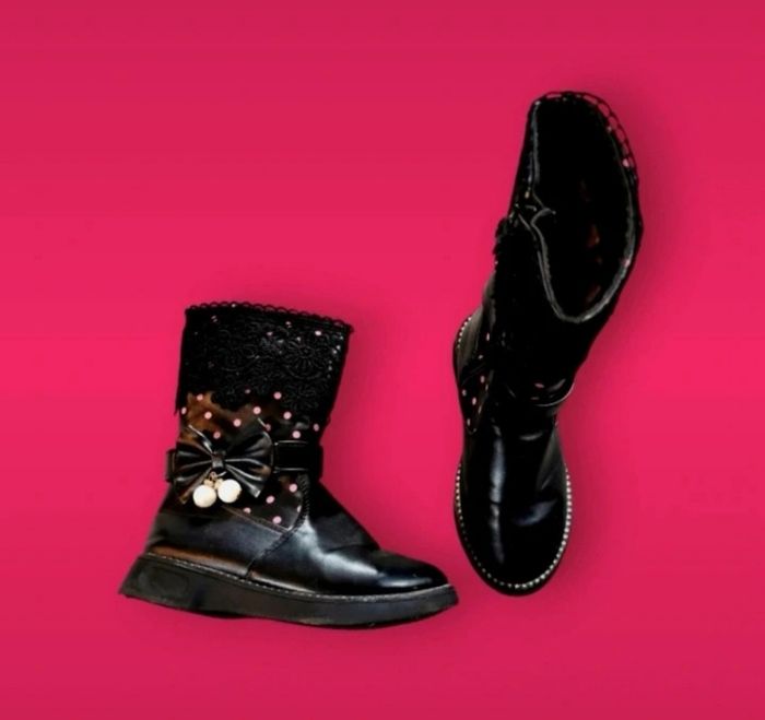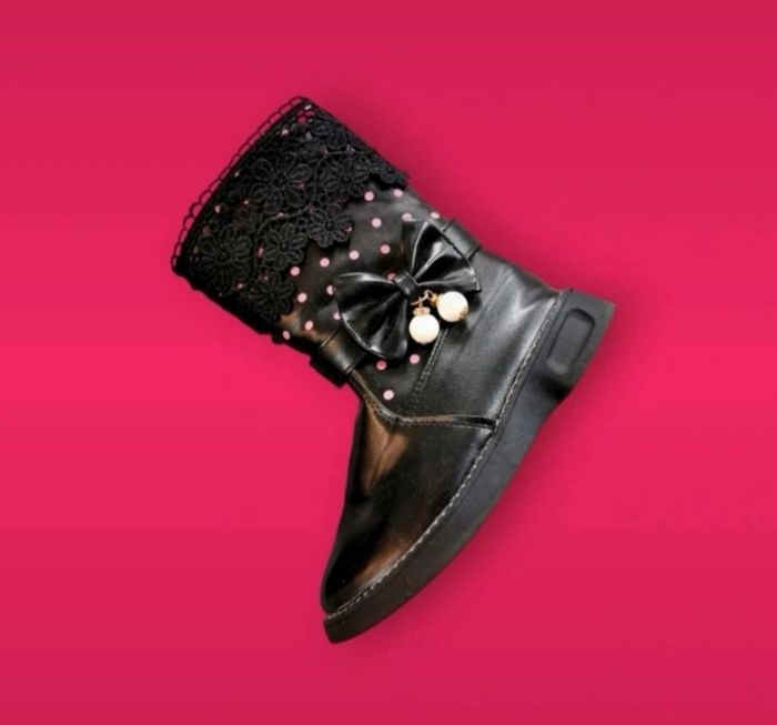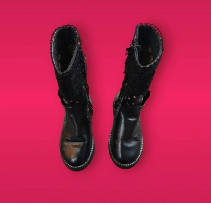 Bottes noires fourrées à pois roses dentelles noeud et perles pointure 31 - photo numéro 1