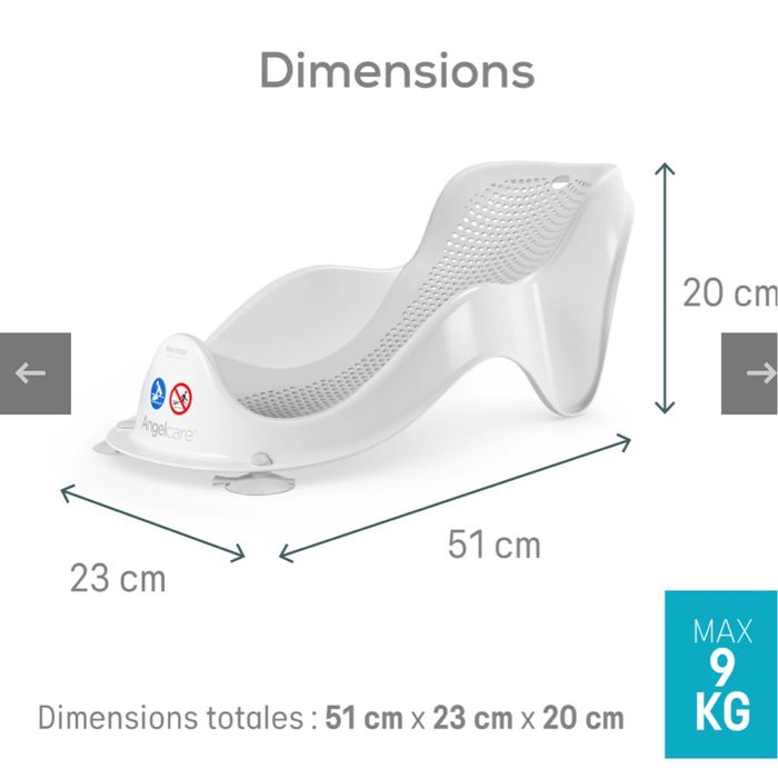 Ce transat se place directement dans votre baignoire, douche ou dans une baignoire bébé. Il inclut un anneau pour assurer un rangement facile.