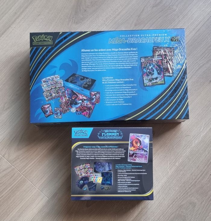 Bonjour, Je vends un lot contenant: Une ETB ME2 - Flammes Fantasmagoriques neuve et scellé en FR. Une UPC Méga dracaufeu neuve et scellée en FR. Les 2 items ont un scellage sans accros. Remis en main propre sur Saint-Sébastien-sur-Loire  ou envoi rapide et soigné. Plus d’info et de photos sur demande