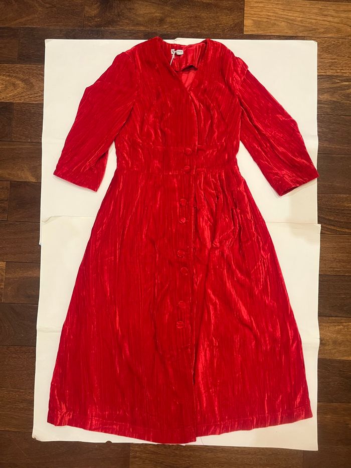 Robe longue rouge velours avec poche boutonnés noël col v neuf avec étiquette taille XS/S - photo numéro 2