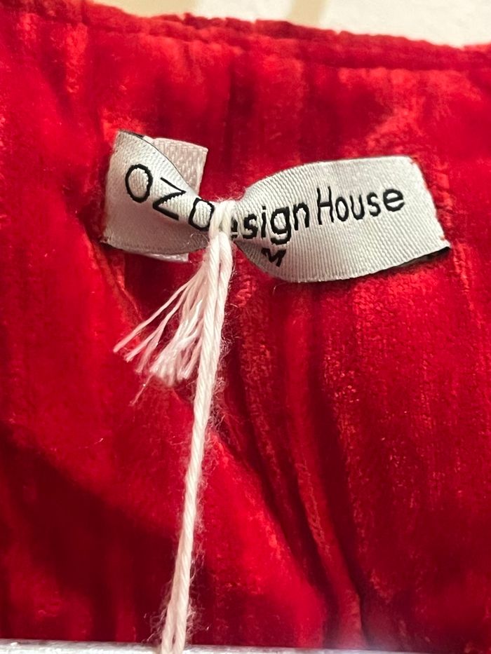 • Robe longue en velours rouge col v. 2 poches sur les côtés. Manches 3/4. Un bouton pression au col et et boutons sur le long. Fente à l'avant. Boutons de rechange inclus • jamais porté, neuf avec étiquette • il est marqué que c’est une taille M, mais taille comme du Xs/s , marque indépendante ozo design house • mesures : 33 cm entre les épaules, 36 cm entre les aisselles, 106 cm de longueur, 20cm entre l'aisselle et la manche