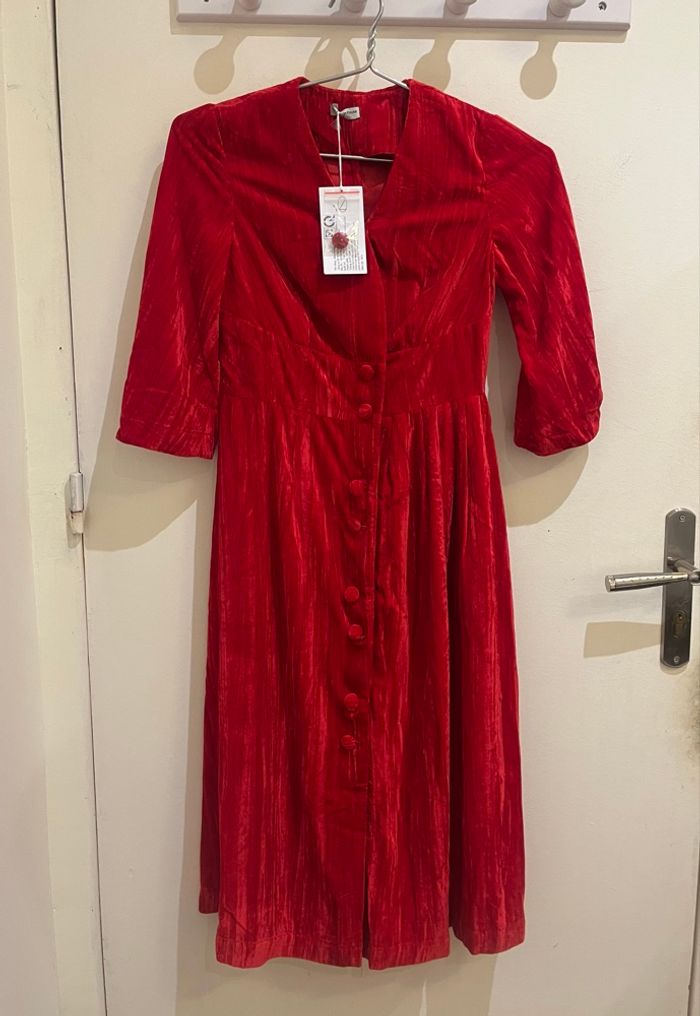 Robe longue rouge velours avec poche boutonnés noël col v neuf avec étiquette taille XS/S - photo numéro 1