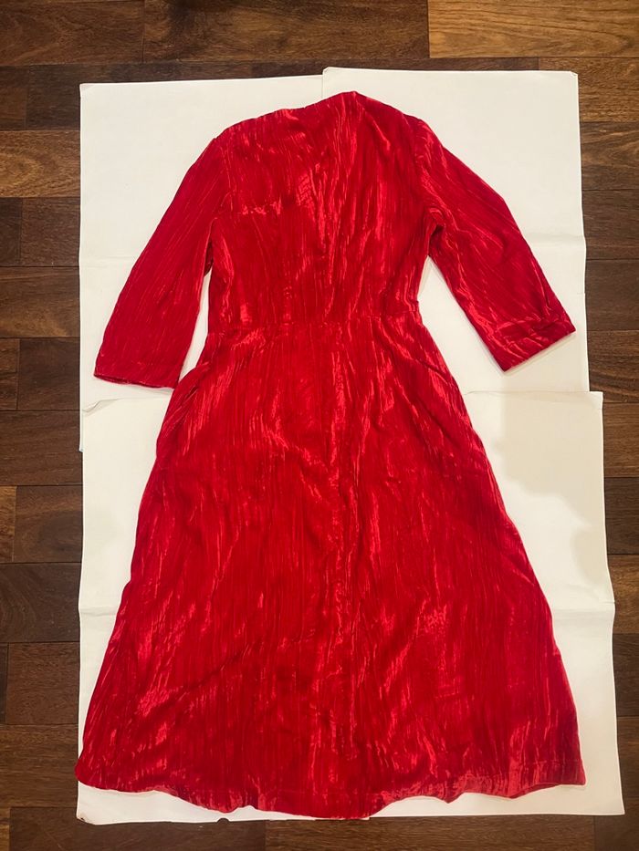 Robe longue rouge velours avec poche boutonnés noël col v neuf avec étiquette taille XS/S - photo numéro 3