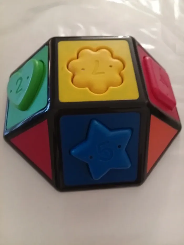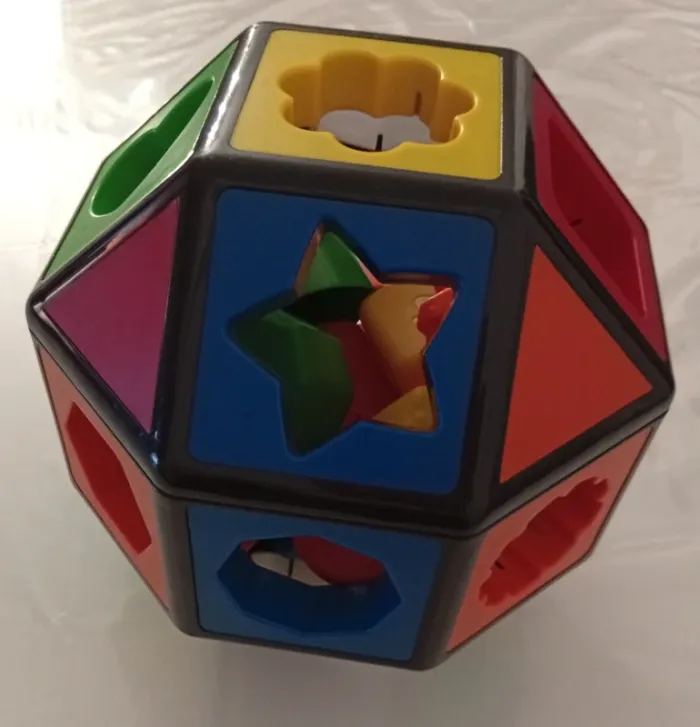 18 trous à remplir, avec les formes correspondantes. À chaque forme est associé un nombre. En grandissant, s'ajoutera la contrainte de la couleur.