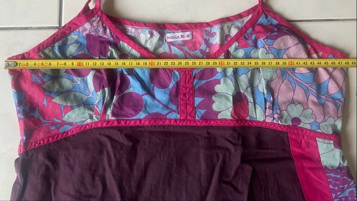 Robe »Malia.B »violette à fleurs multicolores,en excellent état. Il est sur l’étiquette taille 5 ce qui correspond à deux guides de l’IA à du 42/XL. Mesure d’aisselle à aisselles:48cm=96cm de tour de poitrine. 🎯Guides de tailles universels disponibles en dernières photos. 📌Il faut savoir que souvent les marques peuvent avoir un guide de taille qui diffère des unes aux autres donc Merci de vérifier les mesures de vos vêtements avec celui-ci car si ça ne convient pas je n’en serais pas responsable. Si vous avez le moindre doute, n’hésitez pas avant achat de me demander les mesures ou renseignements afin d’éviter tous désagréments. PS:Tous les vêtements sont lavés et repassés avant chaque envoi. 🔥🔥Réduction sur les lots activée🔥🔥 -5% de remise pour 2 articles. -10% de remise pour 3 articles. -20% de remise pour 5 articles.