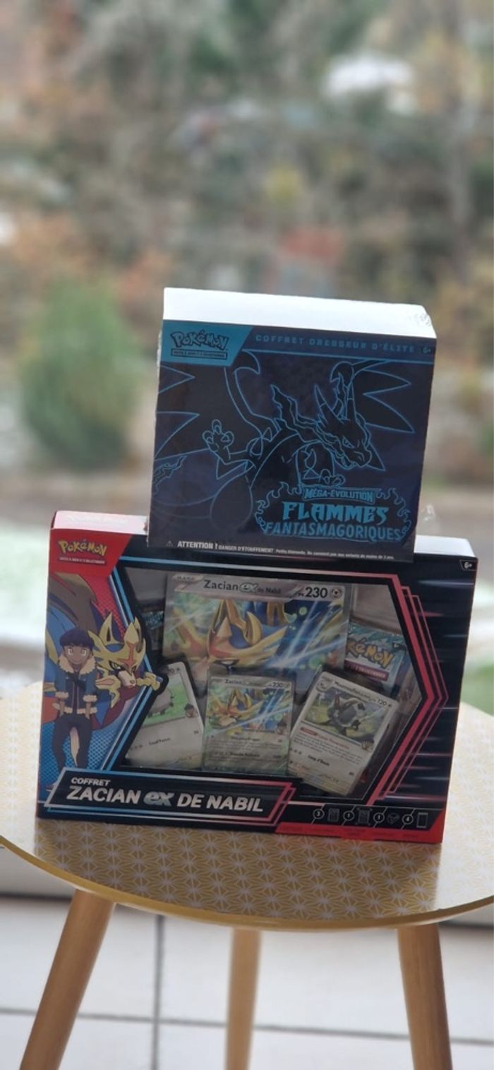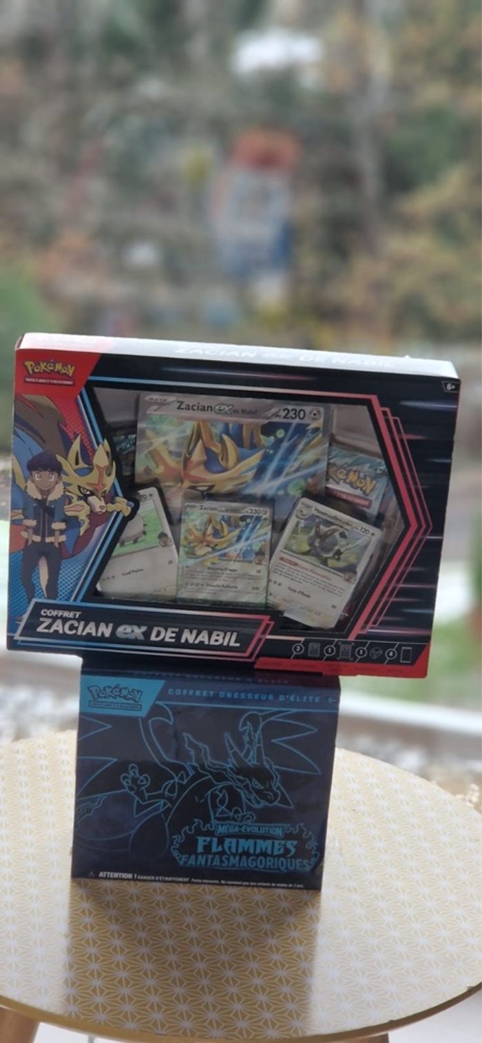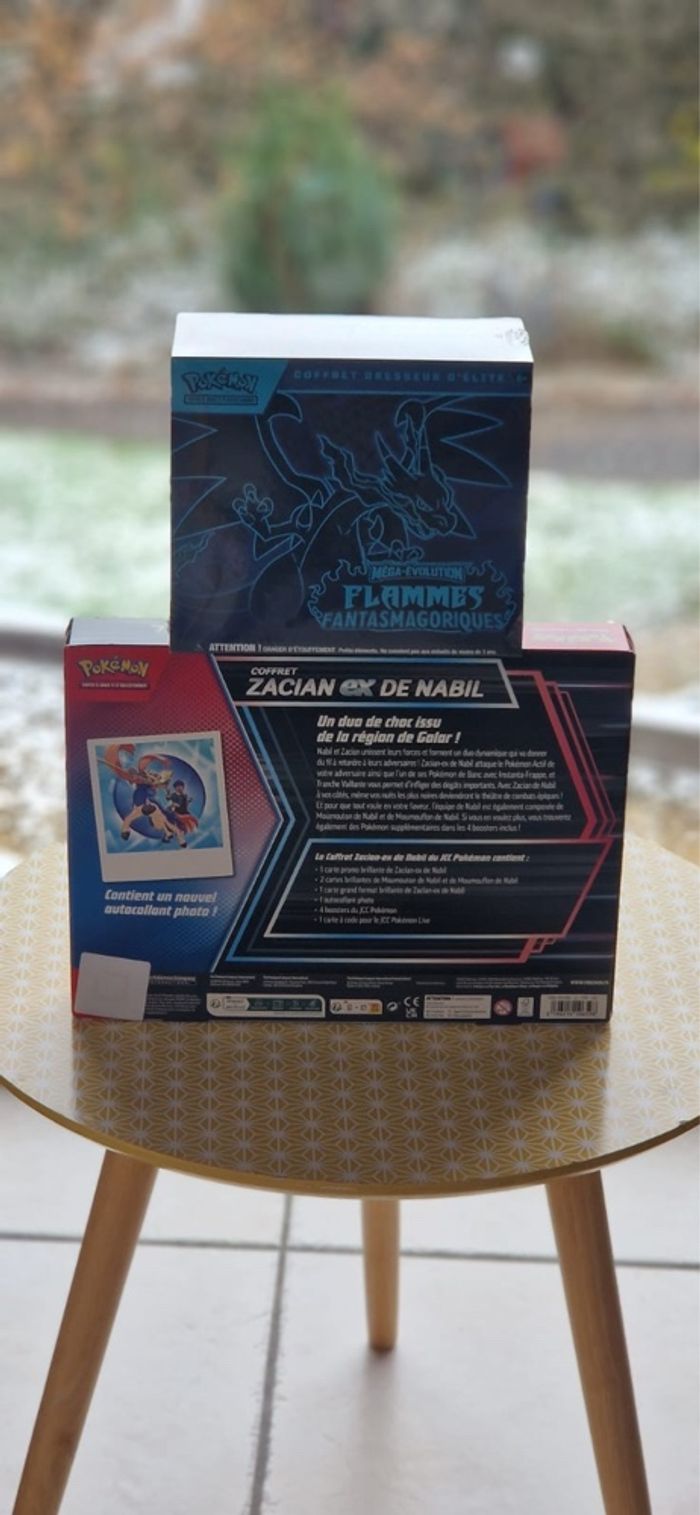 Lot pokémon : 1 etb me02 flammes fantasmagoriques + 1 coffret zacian ex de nabil