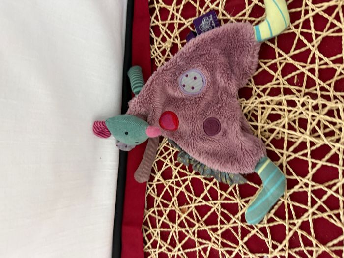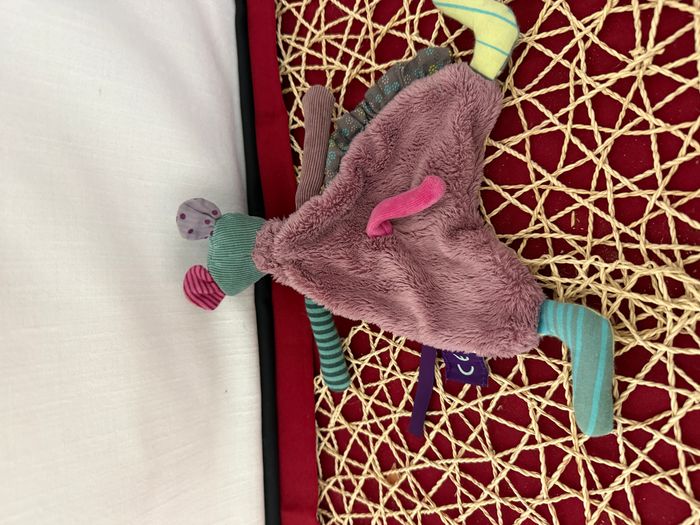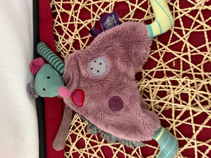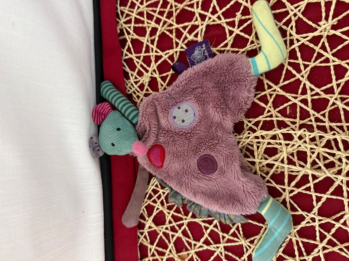 Doudou plat souris MOULIN ROTY Les Jolis pas beaux mauve vert rond