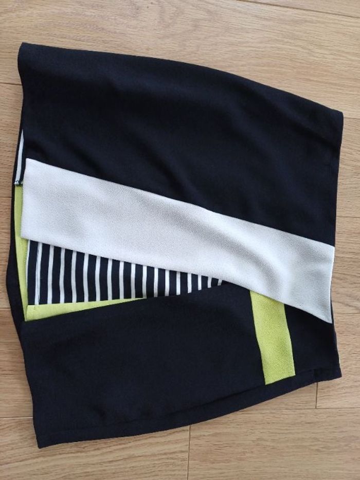 Vends jupe 2 en 1 Miss Captain Trend en taille 40. Peut se porter de plusieurs façons en fonction des envies ! Soit avec le jaune qui ressort soit plutôt rayée 🤗 Excellent état car très peu portée.