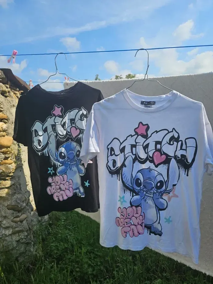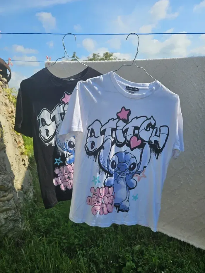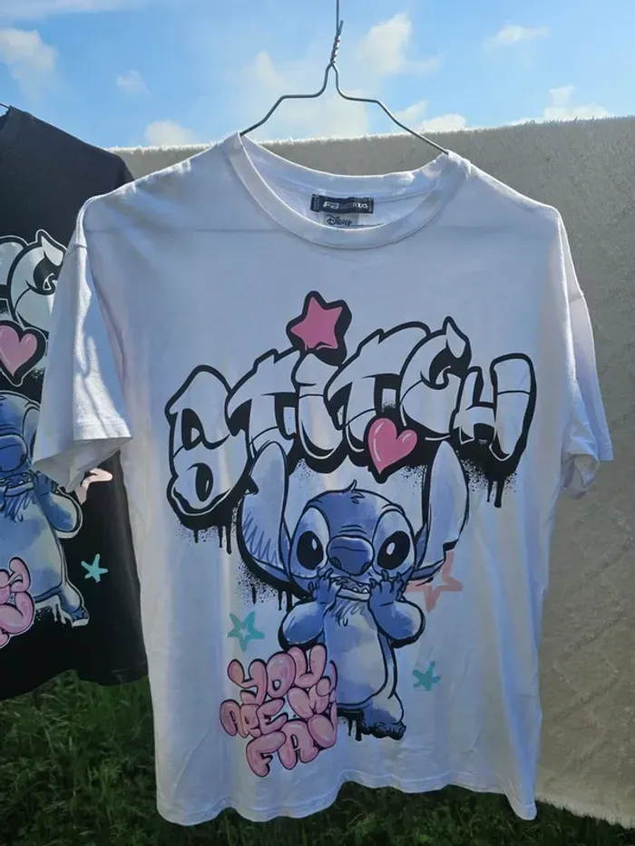 Lot 2 tee shirt femme fille adolescente Taille Xs - porté 2 fois max Possible d'acheter a separement Dessin animée de disney - stitch Teeshirt stylé graffitt Envoi rapidement vetement propre . 📦 Envoi rapide & soigné sous 48h (hors week-end → dépôt le lundi) 🏡 Maison propre, non fumeur, sans animaux 💌 Dispo pour toute question, n'hésitez pas..