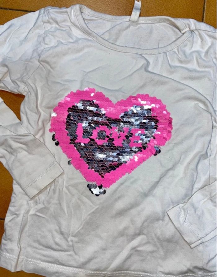 T-shirt à manche longue avec coeur en sequin réversible taille 6/7 ans Bon état