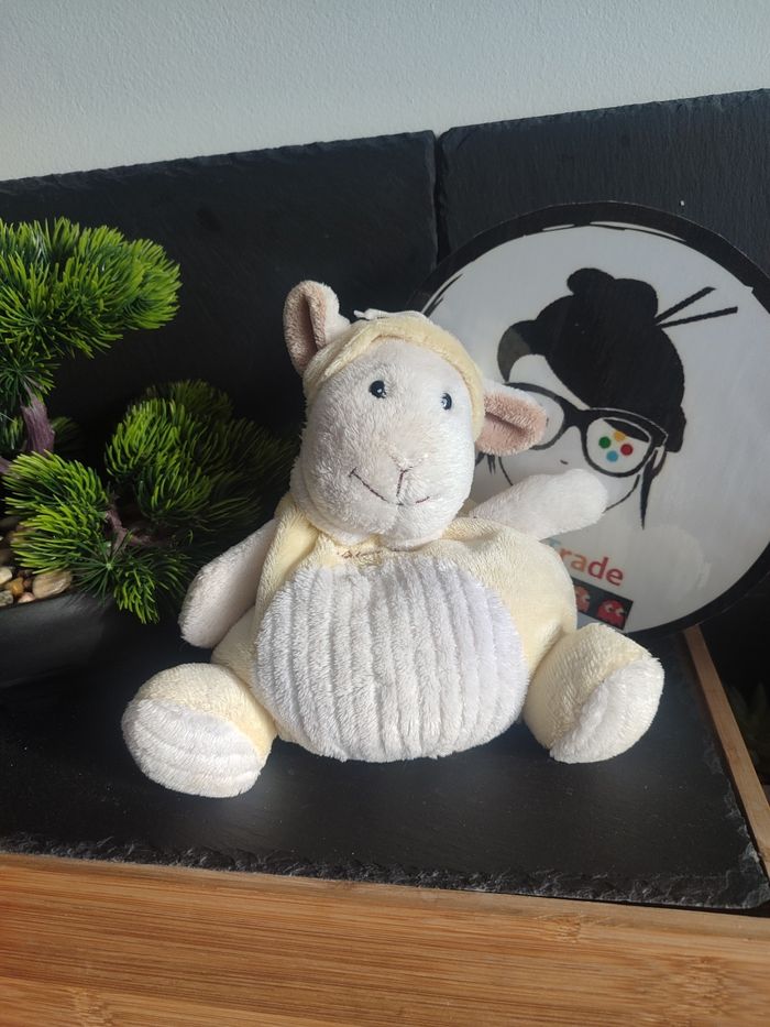 peluche doudou bouillotte blanc jaune mouton boule naloudou bonnet natoudou 3589 - photo numéro 1