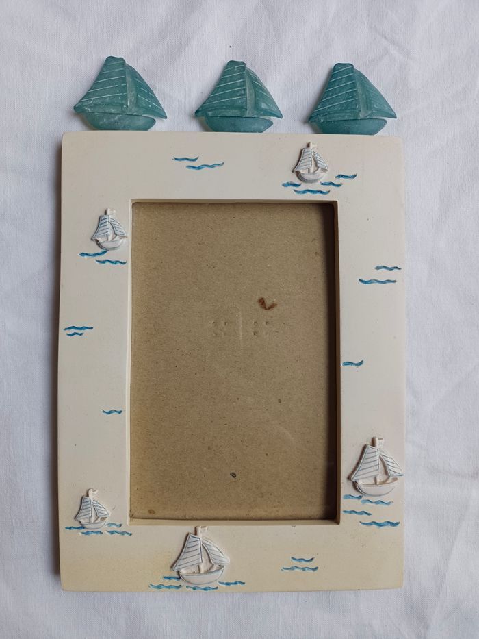 Cadre photo 20 cm de haut (sans les bateaux) 15 cm de large Le cadre est légèrement jauni (Se nettoie certainement)