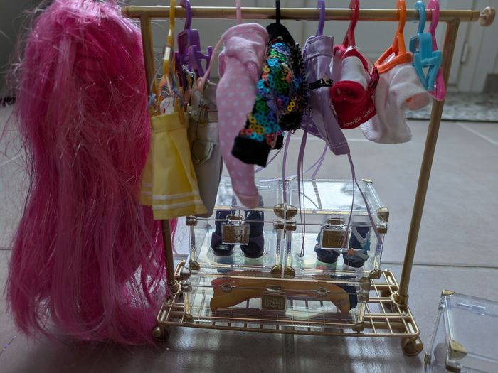 Rainbow high studio mode avec vêtements, chaussures, penderie,.... Tout est en trés bon état sauf une chaussure qui a la lanière cassée