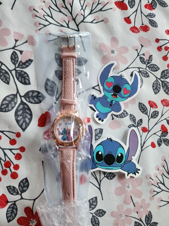 Montre stitch similicuir rose Avec stickers offert Sera emballé dans une pochette en soie rose Parfait pour offrir 🌲 🎁