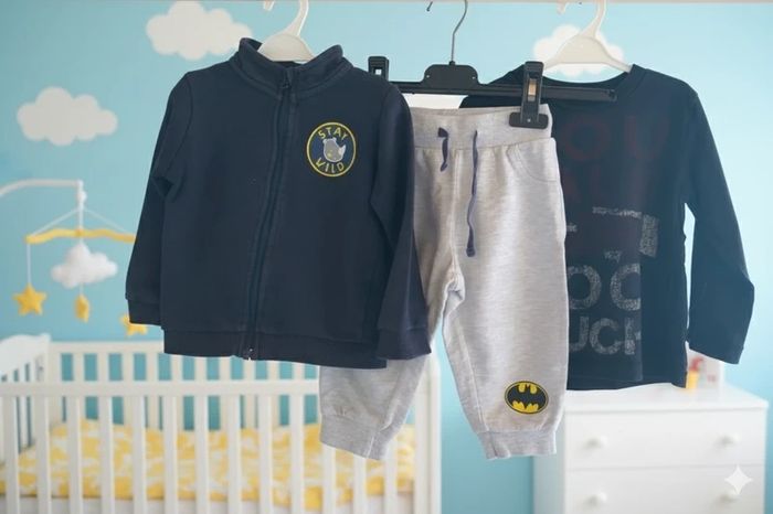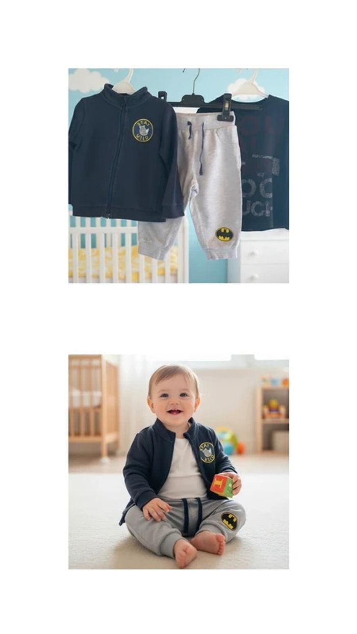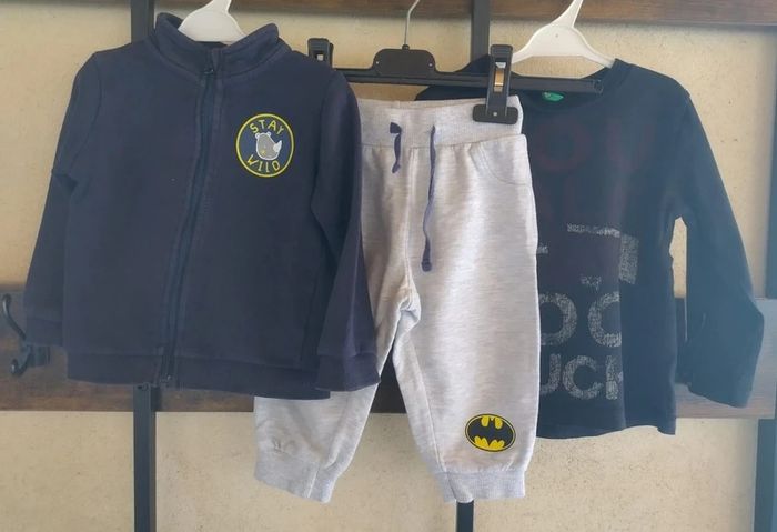 Ensemble 12 mois Prix : 6€ Bon état Marque : Batman, Benetton, lupilu Disponible immédiatement 📦 Envoie rapide et soigné Remises activé sur l'achat d'un lot 🖤