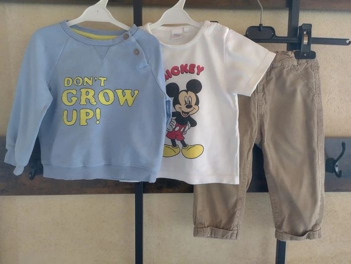 Ensemble 12 mois Prix : 6€ Bon état Marque : Disney , Kiabi, tex Disponible immédiatement 📦 Envoie rapide et soigné Remises activé sur l'achat d'un lot 🖤