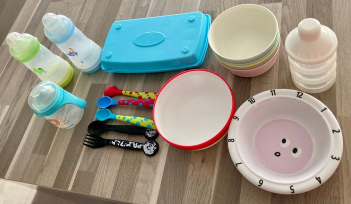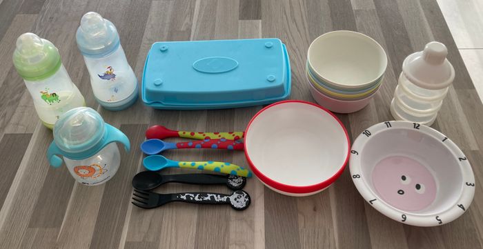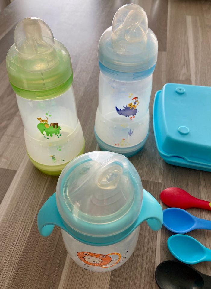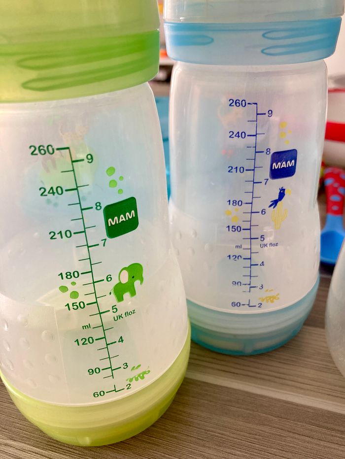 Lot de 2 biberons Mam de 330 ml + 1 tasse d'apprentissage avec poignées Bébé Confort + 1 doseur de 3