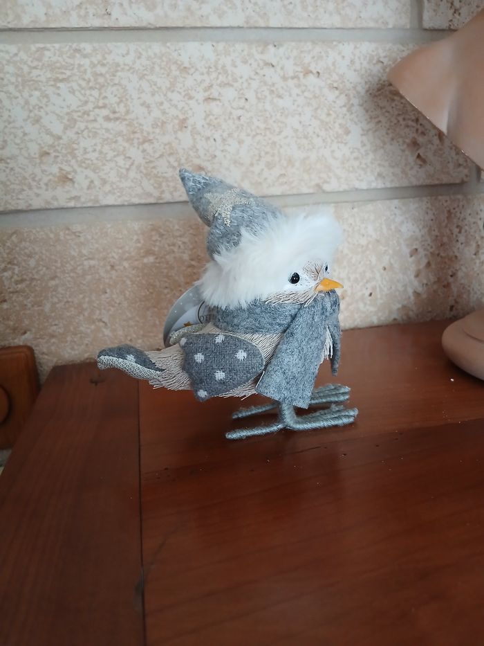 Neuf: Figurine Petit Oiseau avec bonnet brodé & écharpe - photo numéro 2
