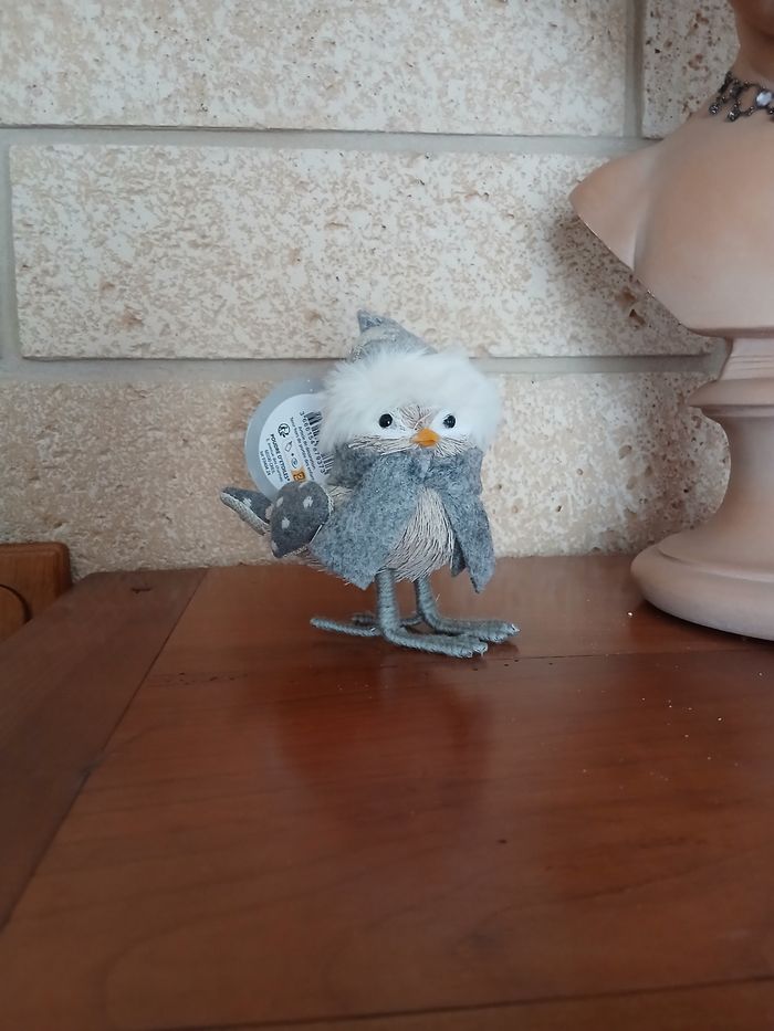 Neuf: Figurine Petit Oiseau avec bonnet brodé & écharpe - photo numéro 7