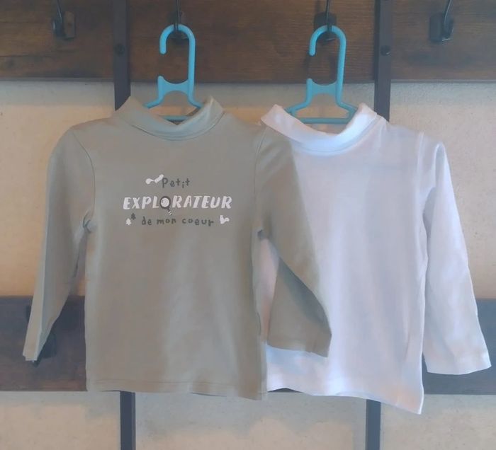 Lots de 2 sous pull col roulé 24 mois Prix : 3€ Très Bon état Marque : Kiabi et tissaia Disponible immédiatement 📦 Envoie rapide et soigné Remises activé sur l'achat d'un lot 🖤