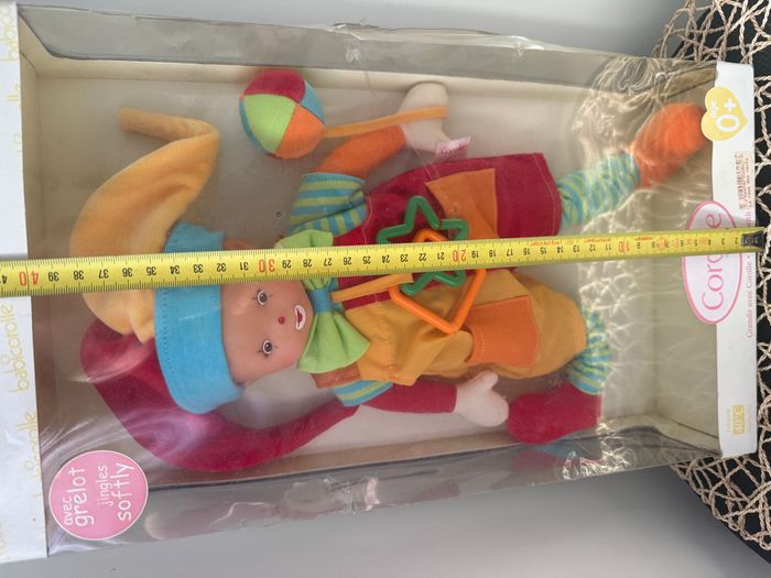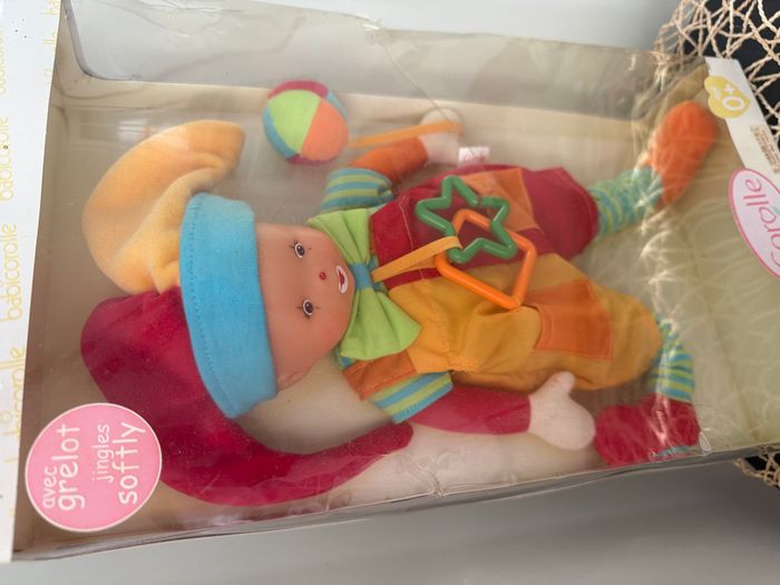 Doudou poupée clown rouge jaune bleu vert balle hochet COROLLE - photo numéro 5