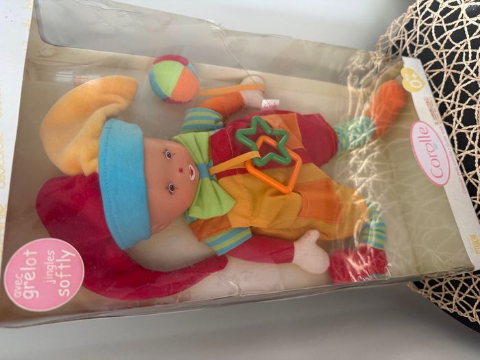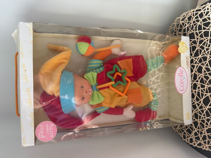 Doudou poupée clown rouge jaune bleu vert balle hochet COROLLE - photo numéro 1