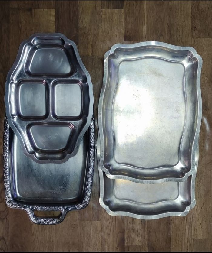 Lot de plateaux en métal vintage En bon état général, avec quelques traces d’usage normales. Idéal pour les fêtes de fin d'année.