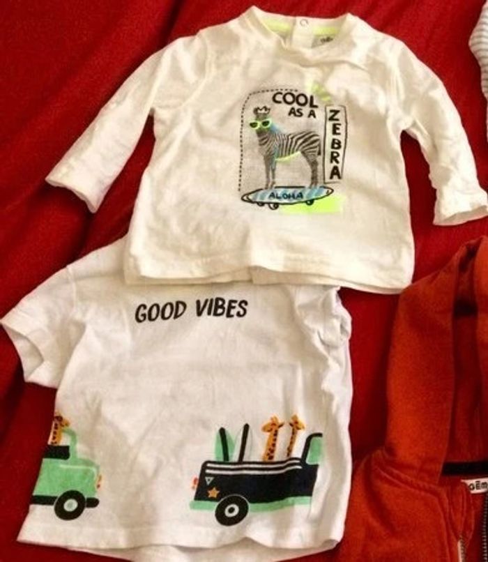 Lot de 17 vêtements taille 68 cm / 6 mois en bon état comprenant: