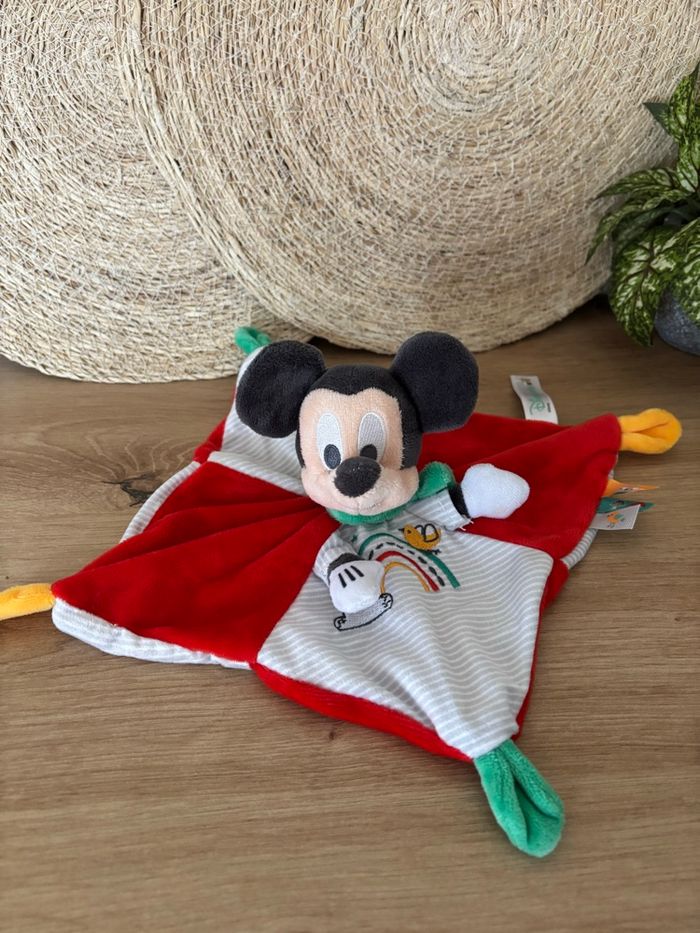 Doudou plat Mickey rouge gris rayé blanc arc en ciel Disney baby - photo numéro 1