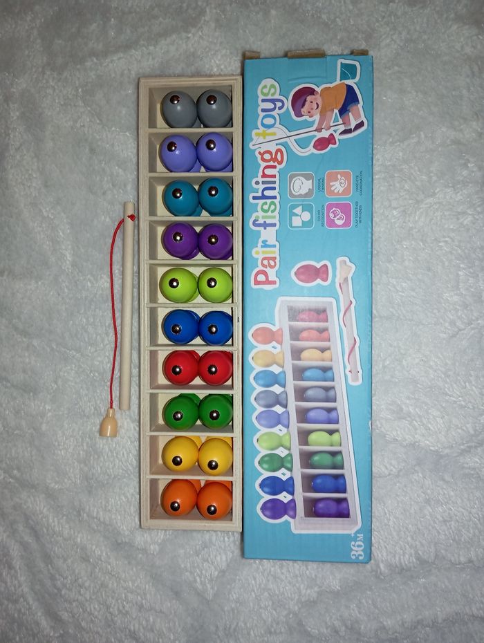 Je vends ce jeu de pêche à la ligne , Méthode Montessori, un jouet d'éveil idéal pour les enfants à partir 2 ans sous la surveillance d'un adulte. - Type de produit : Jouet d'éveil - Marque : Autre - Fonctionnalités : Pêche à la ligne avec figurines colorées État neuf. Un jeu éducatif et amusant pour les tout-petits ! N'hésitez pas à me contacter pour plus d'informations.