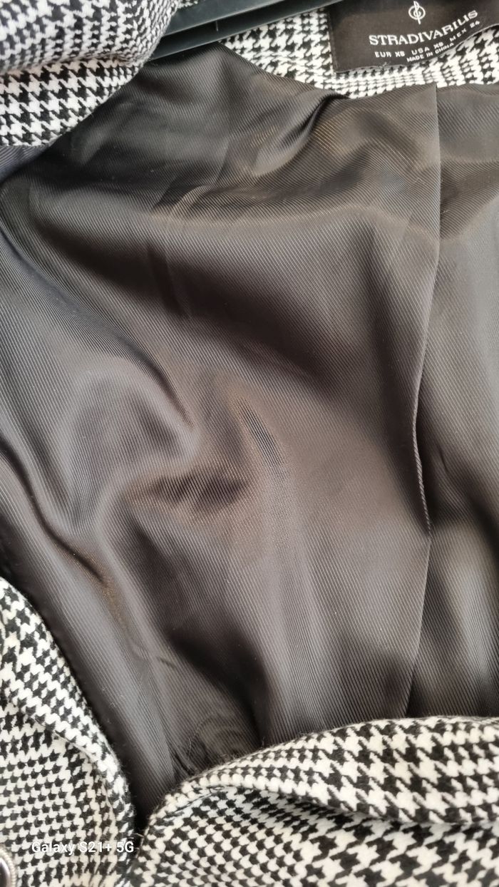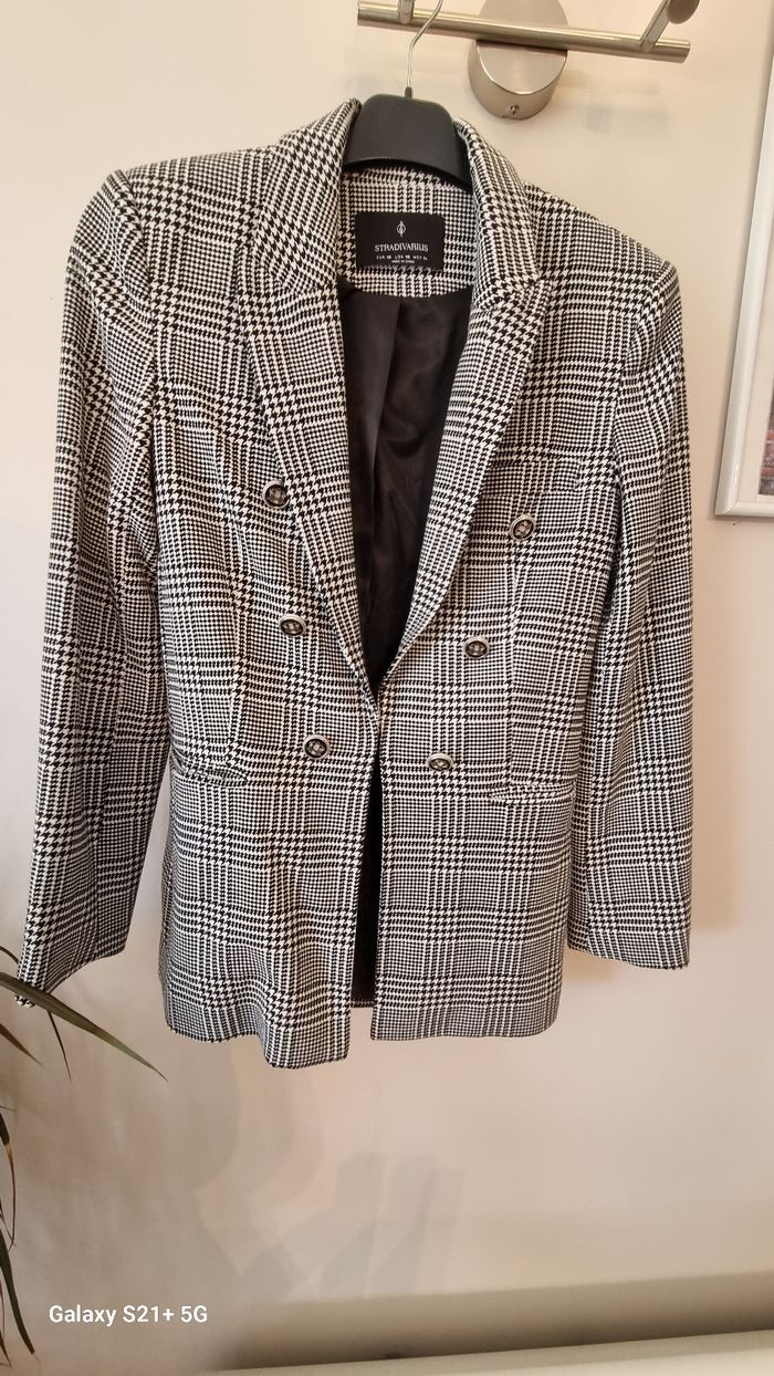 Très peu porté, état proche du neuf, motif pied de poule, boutons de rechange à l'intérieur de la veste, longueur totale 70cm et largeur d'épaules 42cm. #stradivarius #blazerfemme #fashionstyle #fashion #vestefemme