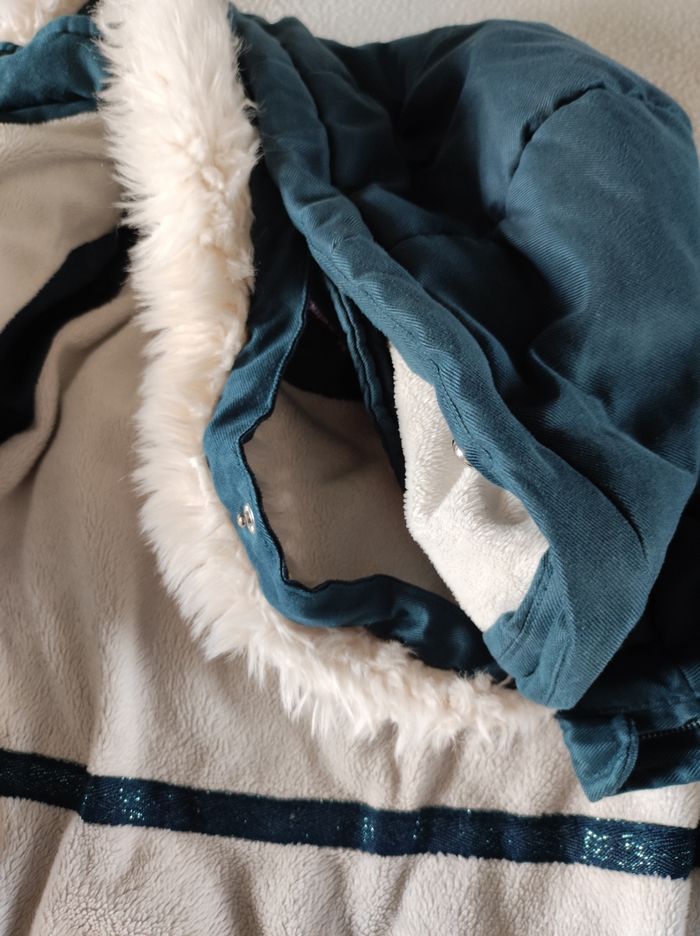 Il est doublé et chaud. La capuche n'est pas amovible mais on peut enlever la moumoute.