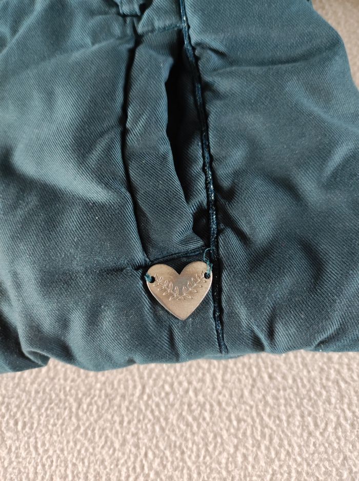 La couleur s'en va un peu sur la fermeture et le cœur devant.