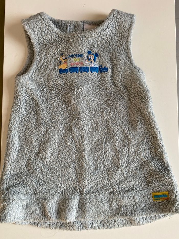 Robe sans manche en sherpa bleu clair avec motif Mickey taille 18 mois