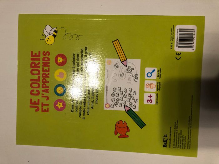 Livre d'activité Je colorie et j'apprends Dans ce livre, chaque image à colorier contient un exercice ludique qui tient compte du programme de l'école maternelle. Si votre enfant a mené à bien l'exercice, il peut coller un joli autocollant de récompense. Ainsi, il apprendra des nouvelles choses tout en s'amusant. Age conseillé: 3 et +