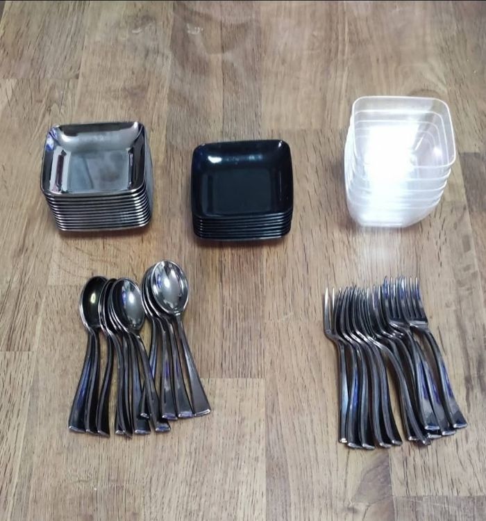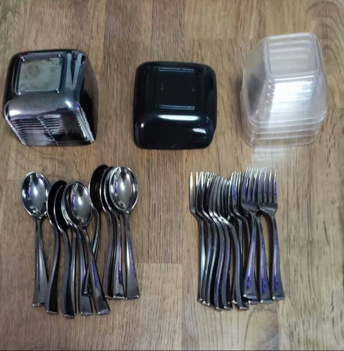 Lot de vaisselles pour les préparatifs festifs Matière plastique réutilisable . Préparez vos plus beaux apéritifs avec plateau moderne et élégant . Le tout en très bon état comme neuf.