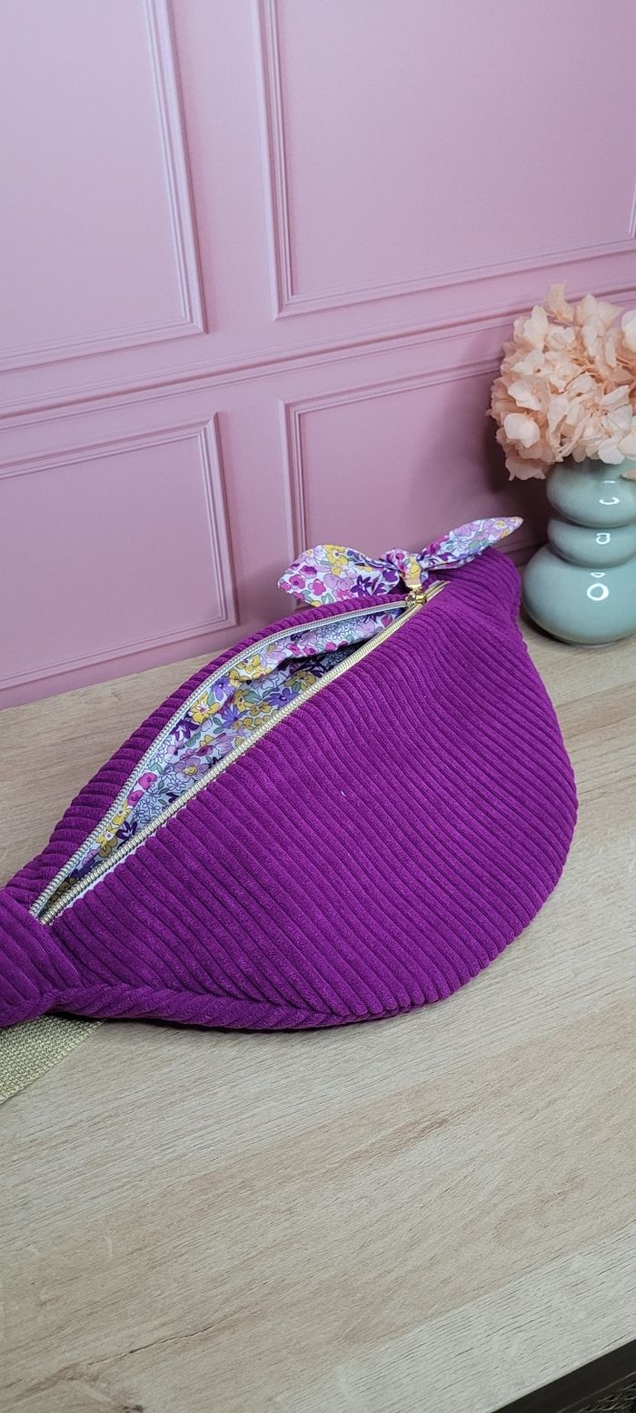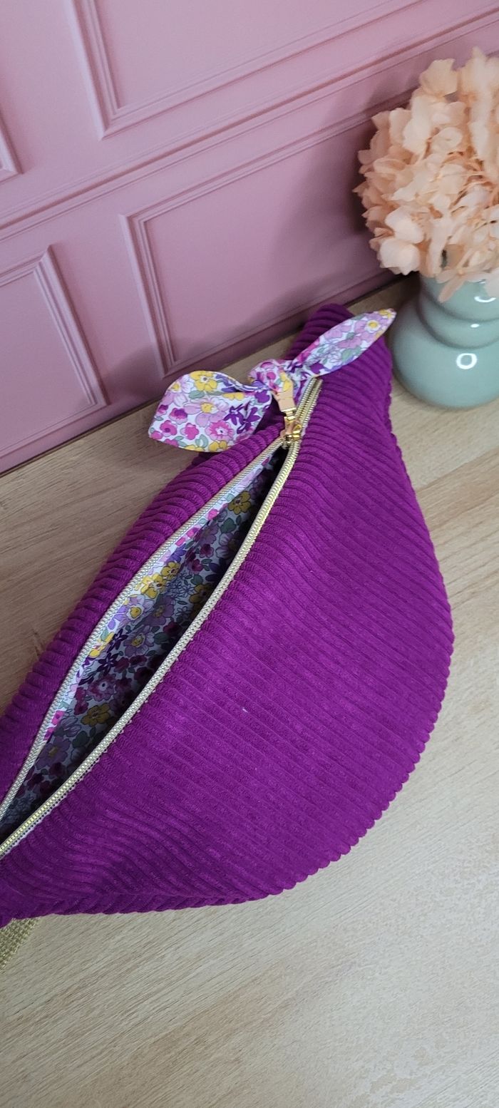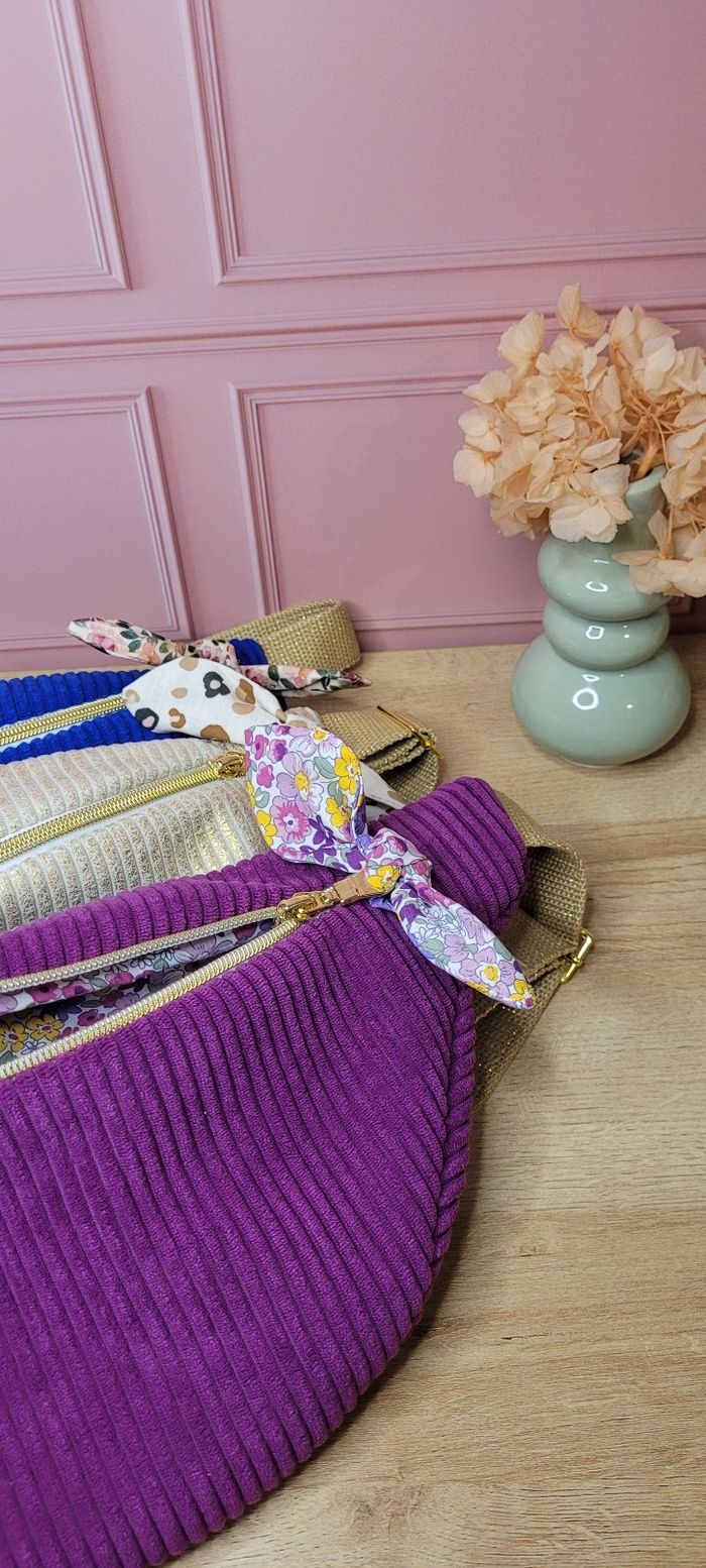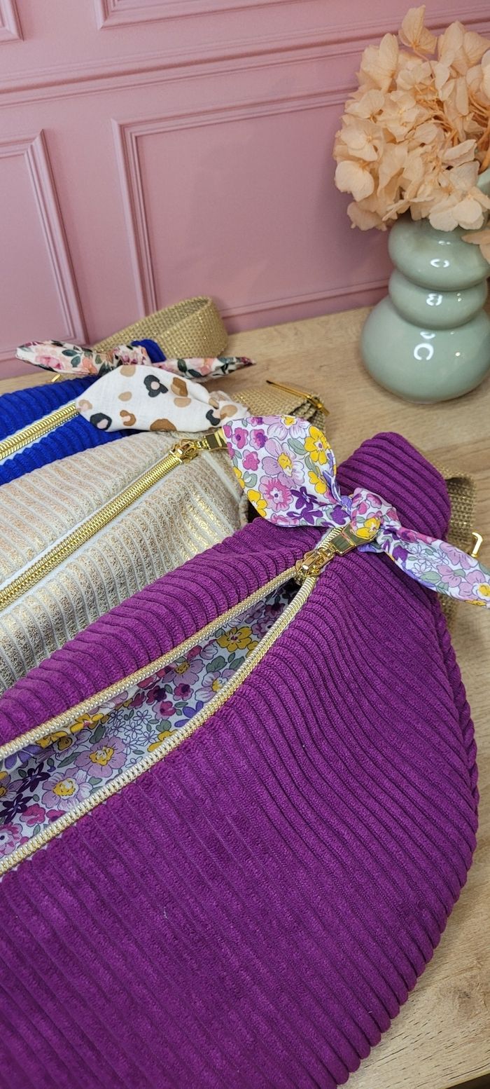 Découvrez le sac banane, l'accessoire incontournable qui allie style, praticité et durabilité. Confectionné à la main dans mon atelier avec soin. Ce sac est compact mais spacieux pour transporter vos essentiels (téléphone, clés, portefeuille) et convient pour les sorties en ville, les voyages, ou les activités sportives. Dimensions : Hauteur du dos 17cm, longueur 36cm (zip 27cm). Sangle ajustable de 54 à 95 cm. Composition : Extérieur en velours épais et coton à motif. Intérieur en coton à motif. Fermeture et curseur doré. Le petit truc en + : Le curseur doré et son joli noeud à motif (tissu identique à la doublure) €35 Pourquoi choisir ce produit ? Fait main avec passion dans mon atelier. Si vous avez d’autres idées ou un style précis, dites-le-moi pour affiner !