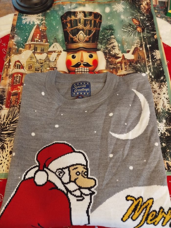 🎅 Pull de Noël S– Neuf – Pour ceux qui aiment l’humour (un peu) douteux mais totalement festif 🌕 Tu veux un pull qui ne passe PAS inaperçu ? J’ai exactement ce qu’il te faut. Attention, pièce rare : un Père Noël en plein pipi artistique dans la neige, écrivant “Merry Christmas” façon graffiti givré. Oui, oui… c’est imprimé dessus. Et oui, c’est absolument magique. 🌕 Belle lune en fond, ambiance nuit d’hiver tranquille… 🌨️ …jusqu’à ce que Santa décide de laisser sa petite signature. 🩶 Coloris gris, passe-partout mais pas discret du tout. 🎅 Taille S neuf, jamais porté (Santa n’a pissé que sur la neige, pas sur le pull, promis). Le pull parfait pour : • gagner un concours du pull le plus improbable, • briser la glace dès que tu entres dans une pièce, • ou juste offrir un moment de confusion et de rire à ton entourage.
