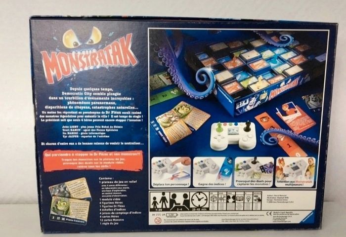 Jeu de société Monstratak de Ravensburger, un jeu amusant et original pour toute la famille. - Type de produit : Jeu de société - Marque : Ravensburger - Âge recommandé : 7 ans et + En très bon état, le personnage noir (Dr Fléau) à été remplacé voir photos