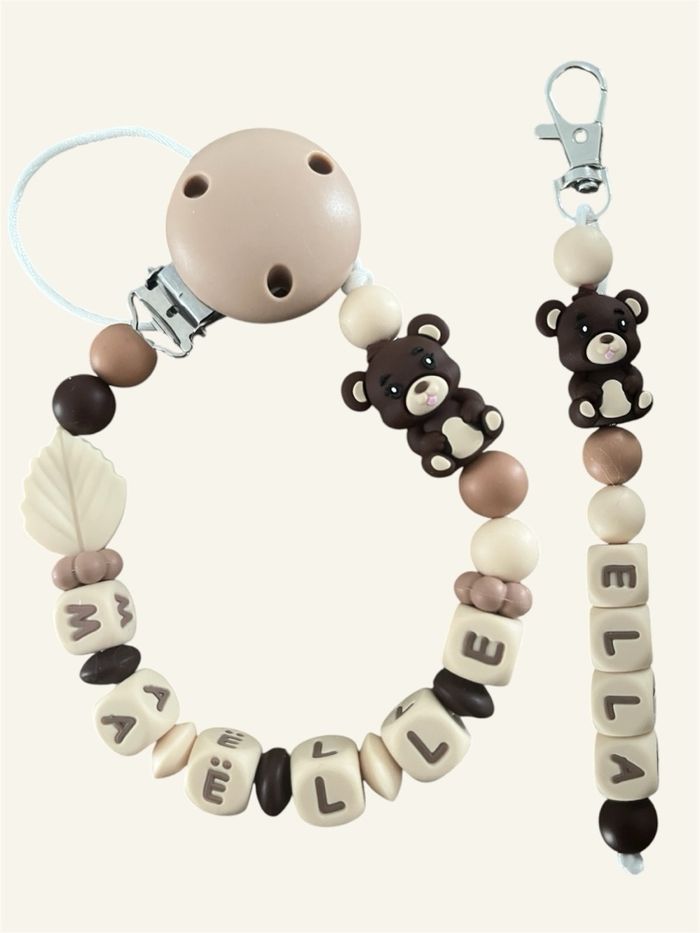 Attache tétine personnalisée nounours 3D lettres beige
