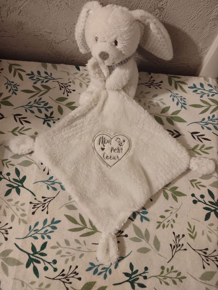 Doudou lapin blanc pommette - photo numéro 1