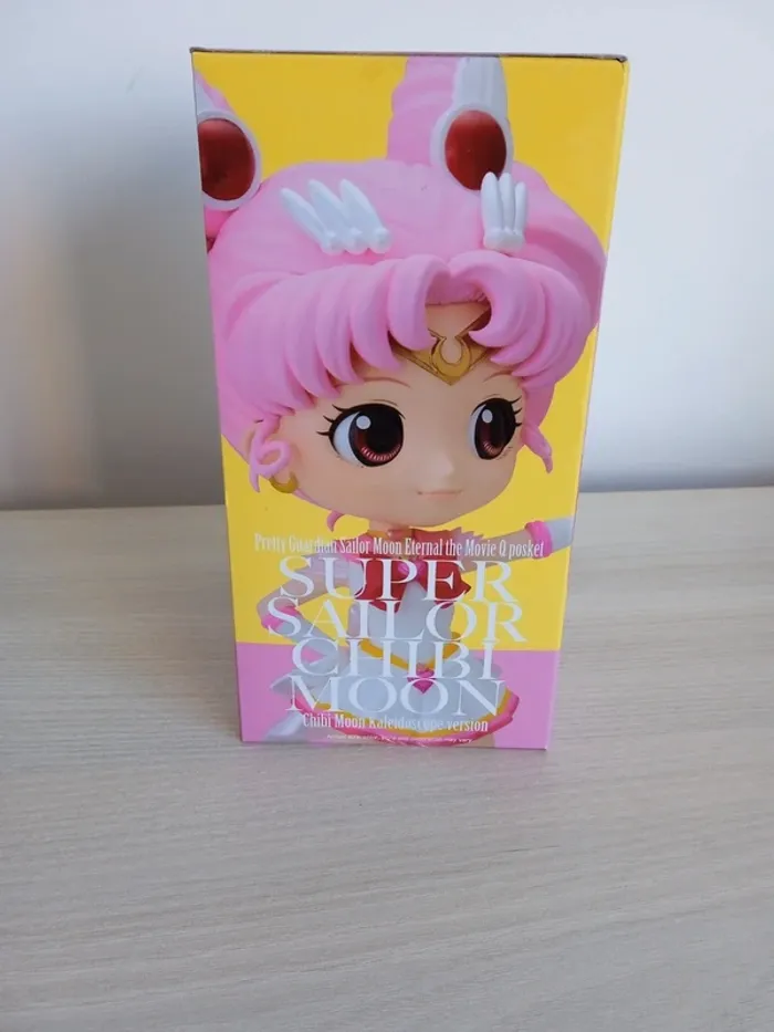 Belle figurine de collection de Sailor Moon Qposket de Bandai Banpresto, hauteur de la figurine environ 14 cm. Personnage Super Sailor Chibi Moon. Article neuf.