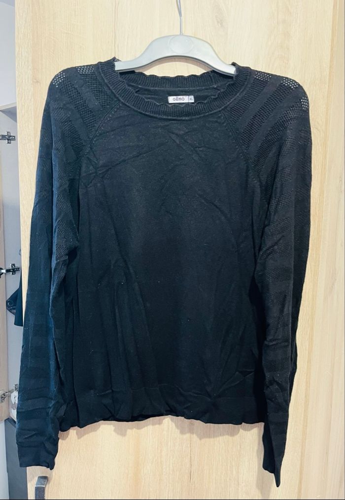 Joli pull taille XL couleur noir Détails ajourés sur les manches et épaules