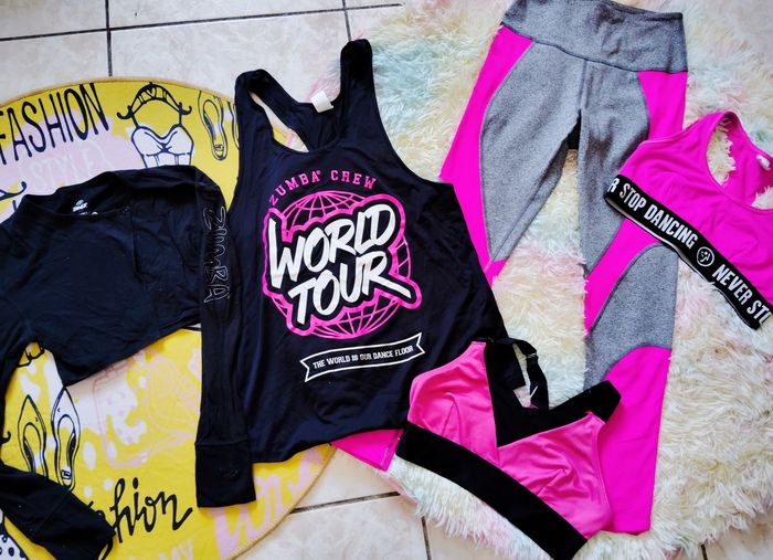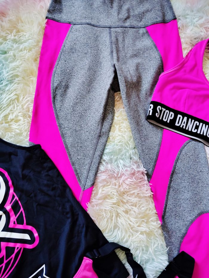 Lot Zumba S débardeur brassière legging gris rose